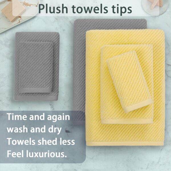 - 【Quick-Dry, 100% Cotton, Soft】 This towel set combines luxury softness and ultimate absorbency. Constructed using loops of 100% cotton and a zero-twist weave, these plush towels quickly absorb water, dry quickly and thoroughly, and offer a lighter weight than ordinary towels. They are soft to the touch, providing fluffy softness for the ultimate comfort in your bathroom