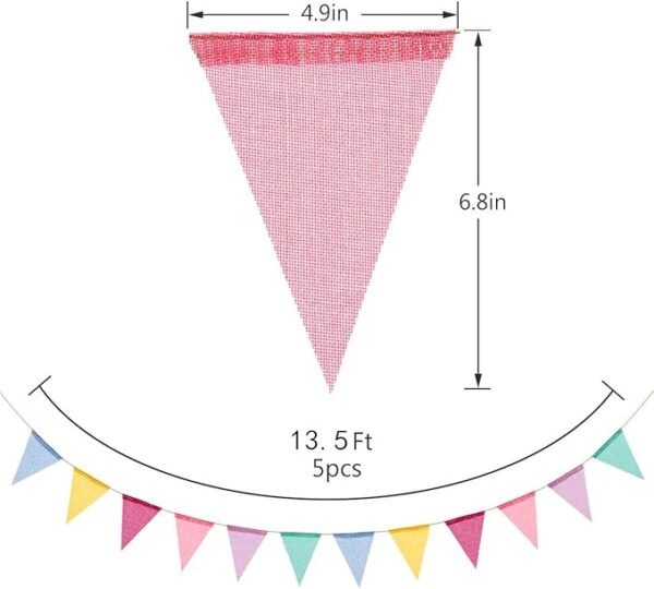 • Package Quantity and Size: you will get 5 Pack of banners and each 13.5 feet long burlap banner with 12 pieces pennants; Each pennant measures 4.9 x 6.8 inch (W x H).