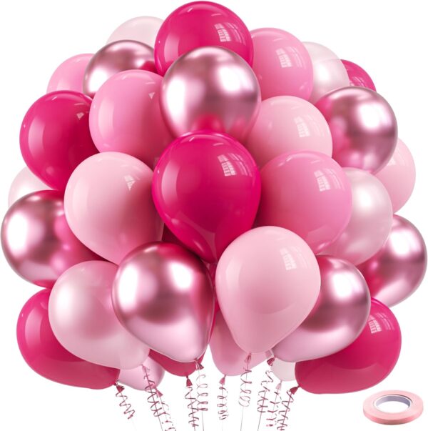 - 【What You Will Get】- Pink balloons includes 20pcs pink balloons, 10pcs metallic pink balloons,10pcs pearl pink balloons, 10pcs hot pink balloons, 10pcs pastel pink balloons and 1pcs pink ribbon. The size of the balloon is about 12 inches after inflation. The combination of multiple pink adds a touch of glamour to any party.