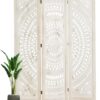 66.9″ 3-Panel Wood Carved Folding Room Divider, Freestanding Privacy Screen, White-Washed