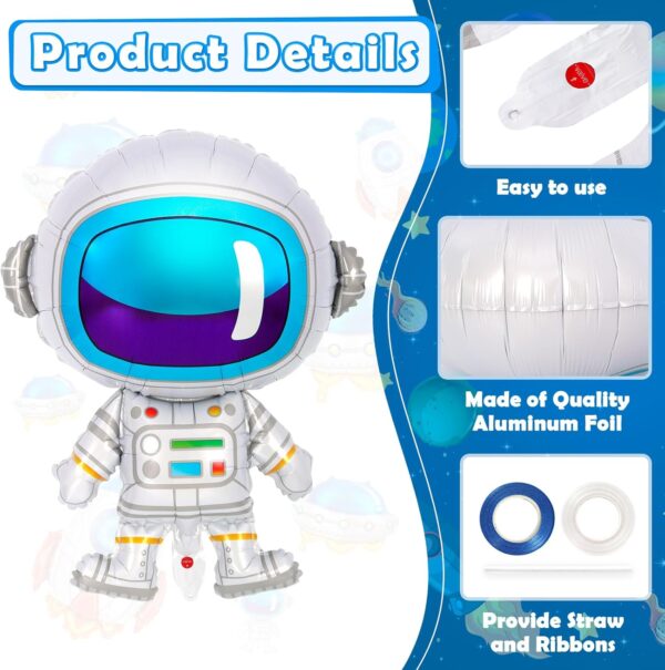 - Space Theme Balloons: You will receive 2 pcs astronaut balloons, 2 pcs UFO balloons,2 pcs rocket balloons, a roll of blue ribbon, a roll of white ribbon and a straw. The bright colors and exquisite patterns will make your party more memorable and enjoyable.