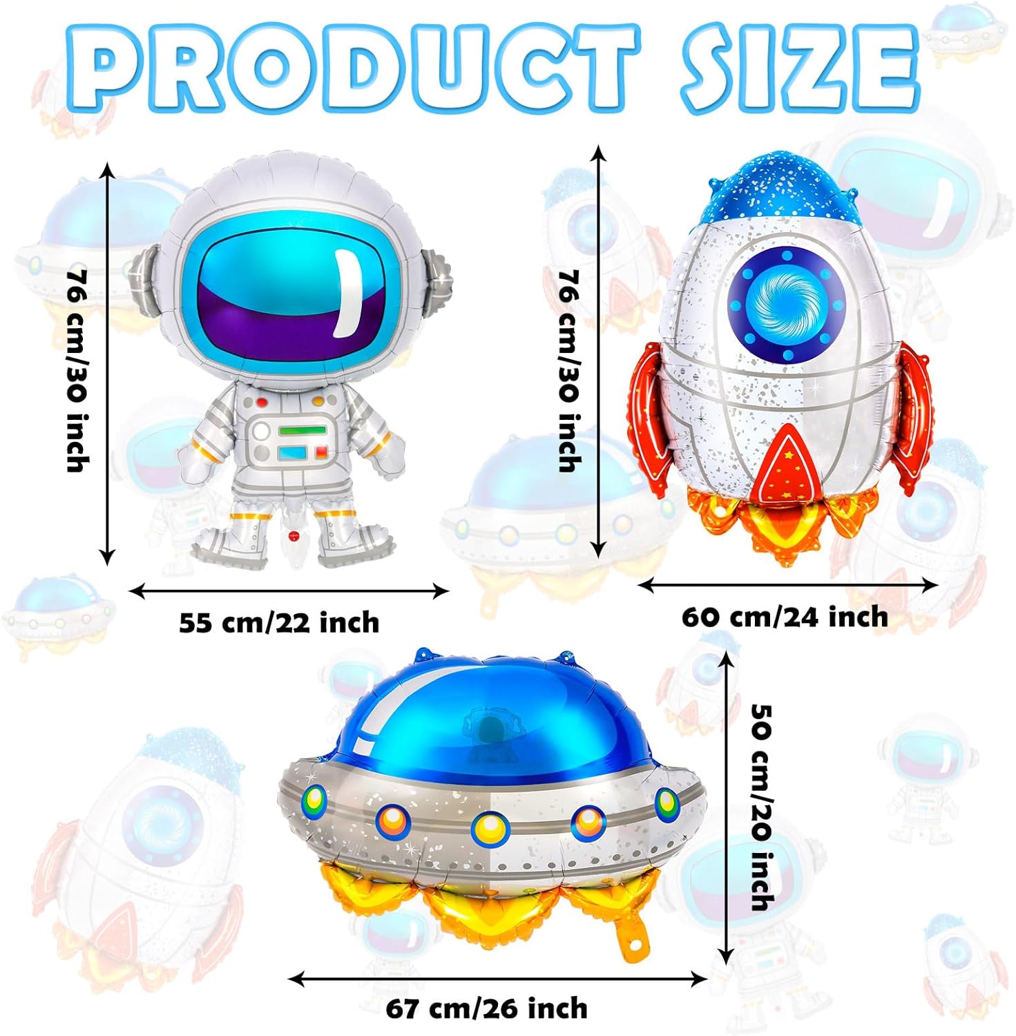 - Space Theme Balloons: You will receive 2 pcs astronaut balloons, 2 pcs UFO balloons,2 pcs rocket balloons, a roll of blue ribbon, a roll of white ribbon and a straw. The bright colors and exquisite patterns will make your party more memorable and enjoyable.