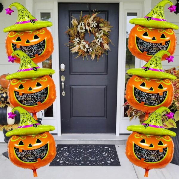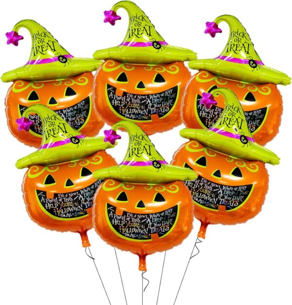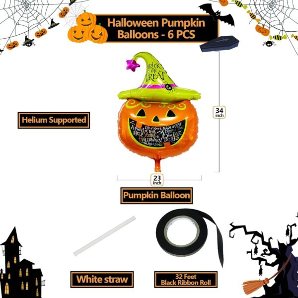 - Halloween Balloons Decorations: You will get 6 pieces mylar pumpkin balloons, and sizes are 34inch x 23inch,1 rolls of ribbon,1 straw. Pumpkin foil balloons are best decor choice for decorating and celebrating coming spooky ghost party, pumpkin party or Halloween party decorations.