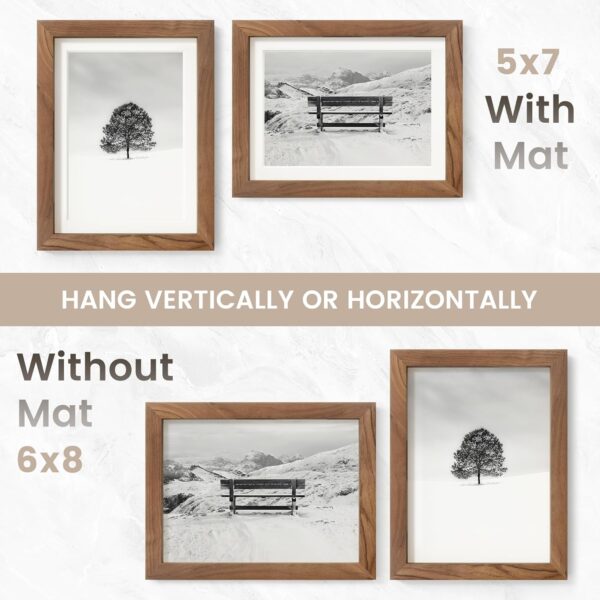 - USA-SOURCED WALNUT WOOD: Picture Frame is made from rough sawn lumber, each frame is uniquely hand-milled and then highlighted and protected with clear vanish, a non-toxic, natural, and durable furniture-quality finish, showcasing the wood’s stunning natural hues, because the excellent texture, long-lived durable characteristics, becomes the one of the most popular woods in home decor, and due to the grain pattern, suitable various kinds of decoration style.