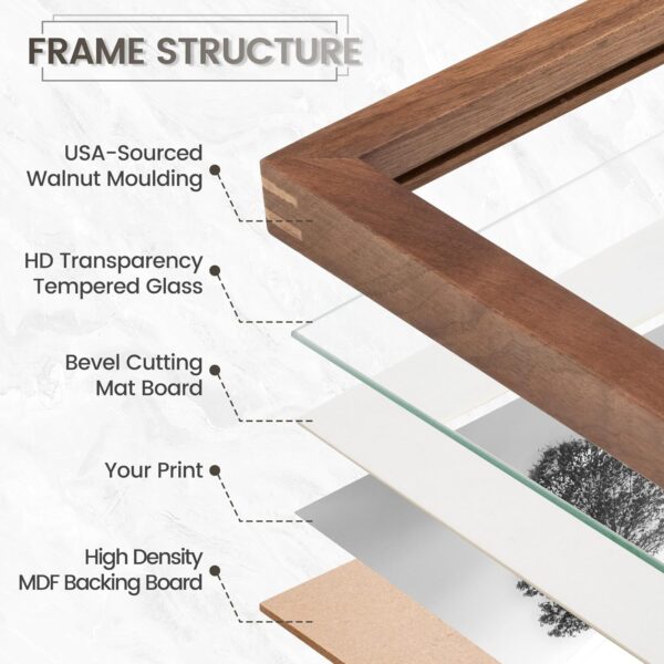 - ANTI-SCRATCH HD TEMPERED GLASS: Walnut Wood photo frame come with anti-scratch tempered glass that is stronger and safer than traditional glass or plexiglass. The high-definition glass prevents bending, scratches, and reflections, allowing your precious pictures to be showcased perfectly.