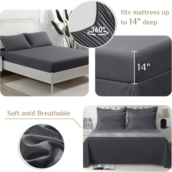 - Practical Design: Deep pocket elastic fitted sheet stays securely anchored on 10-14″ mattresses, even with restless sleepers who toss and turn, while the envelope pillowcase keeps the pillow in place and make it easy to change