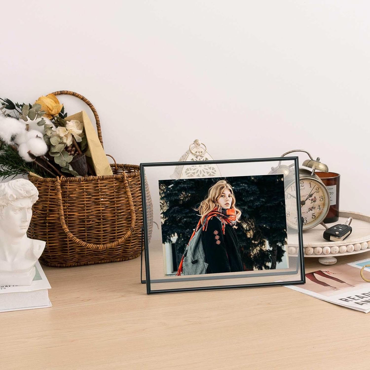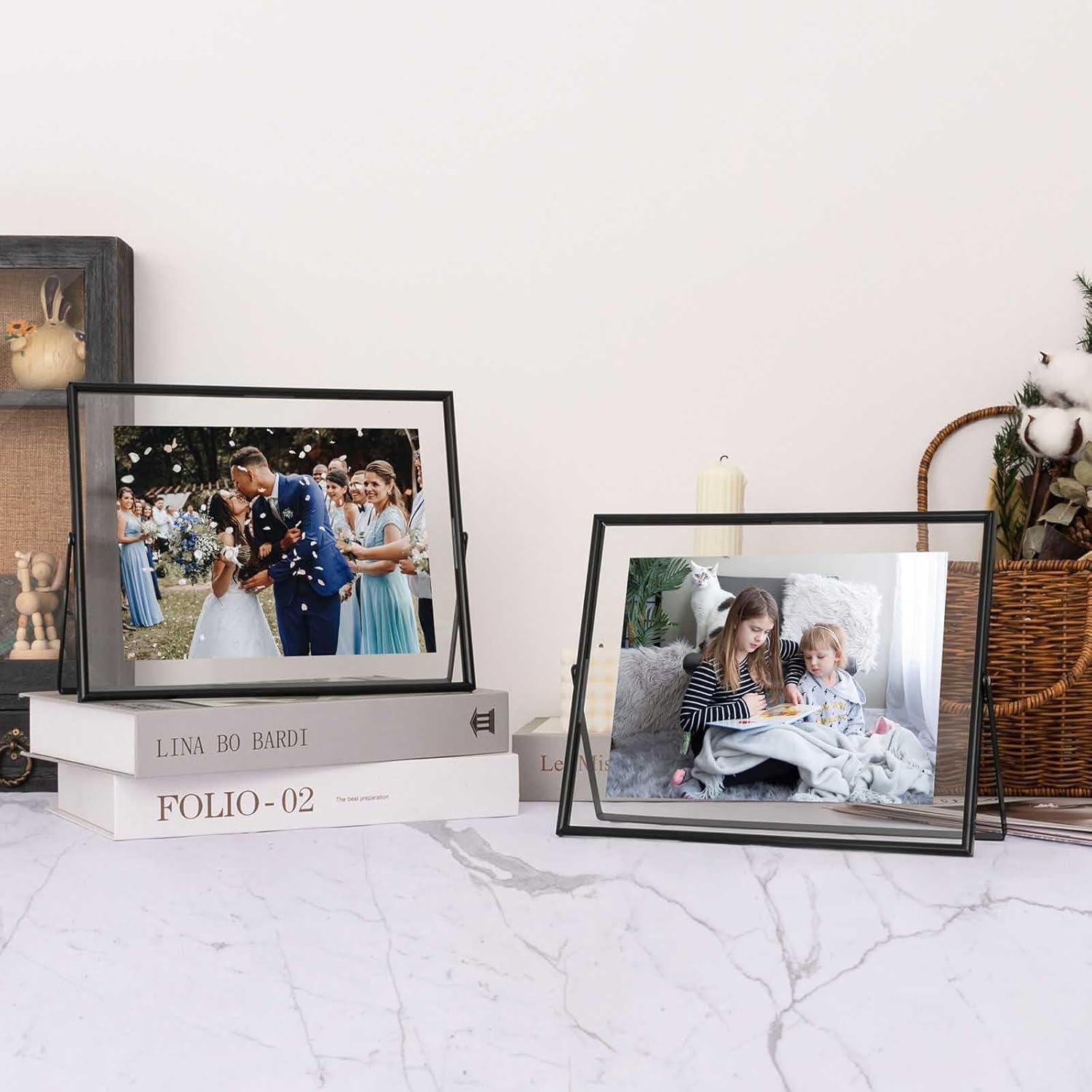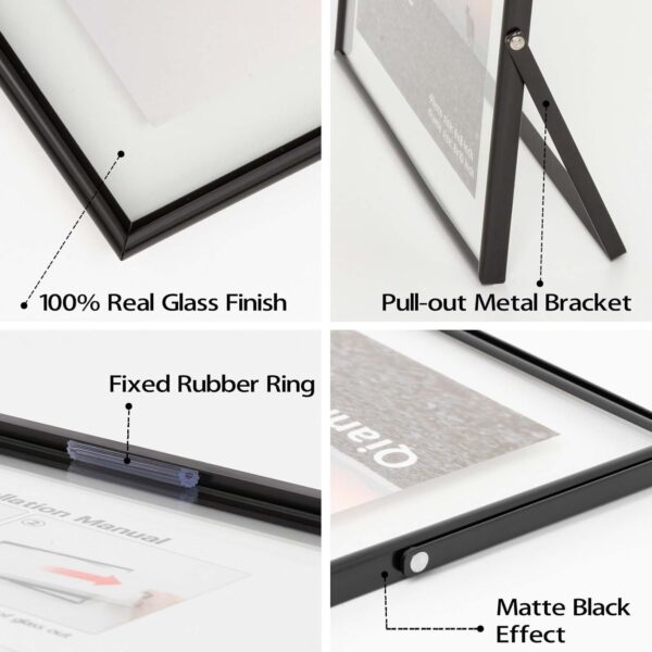 • 💝【QUALITY】 The floating photo frame is made of metal and two pieces of real glass. The metal frame is finished in an attractive electroplated black tone. It features a modern style with a slim profile and a floating photo effect.