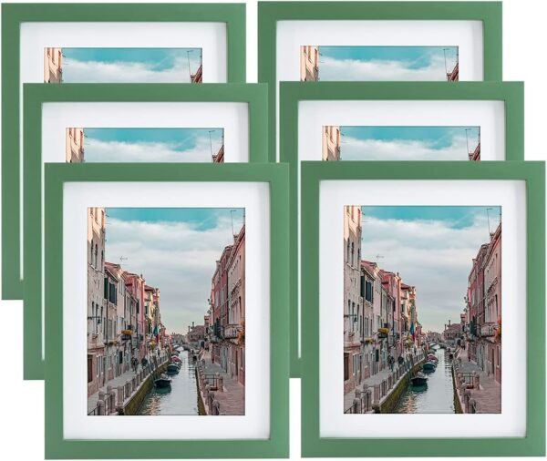 - 6 Pack 8 x 10 Green Picture Frames: Display pictures 6 x 8 inch with mat or 8 x 10 inch without mat. Mat include.