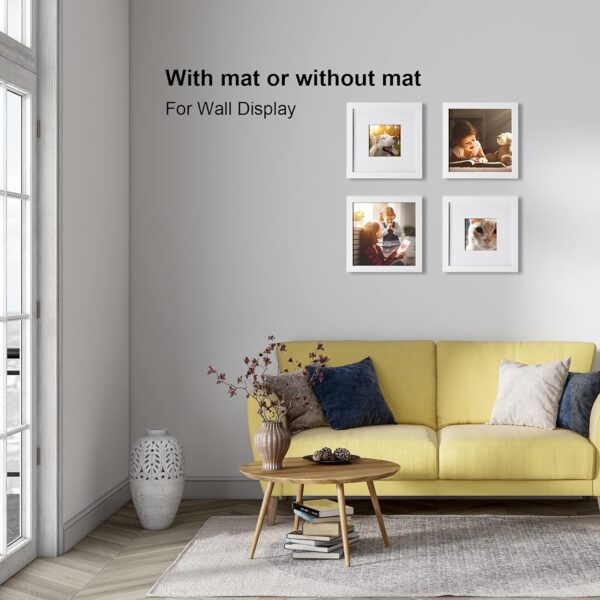 - MULTIPLE PHOTOS DISPLAY: Ideal decor frame for 8×8 inches picture or print, also for 4×4 inches picture with mat. Great gift for festival, Mother’s day, birthday, wedding and holiday. Display your photographs, travel souvenirs, concert programs, awards, certificates, artwork.