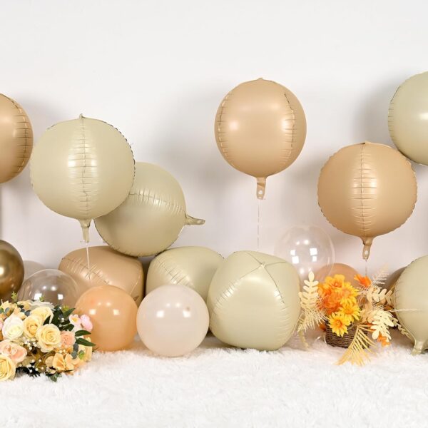 - MATERIAL: Our 22 inch cream and beige giant 4D round-shaped balloons feature neat edges, are not easy to explode or leak, non-toxic, and come in vibrant colors. Combine them with complementary décor for an attention-grabbing setup.