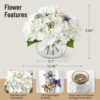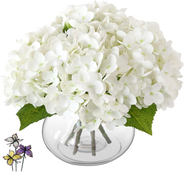 - Hydrangea Artificial Flowers with Vase:Include 4 real touch hydrangea flowers, 3 simulated butterflies, a wooden flower arrangement holder and a glass vase, making it easy to create a beautiful simulated floral arrangement!