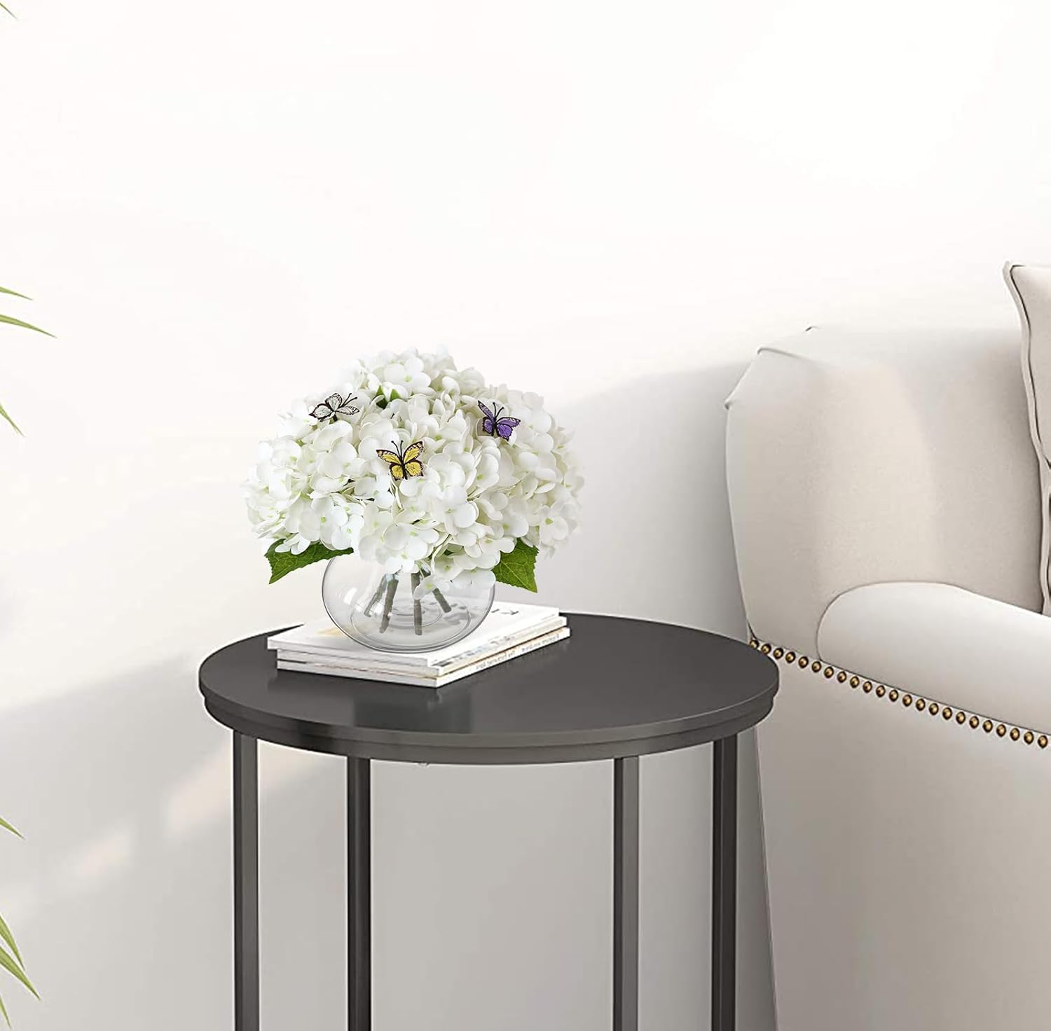 - Hydrangea Artificial Flowers with Vase:Include 4 real touch hydrangea flowers, 3 simulated butterflies, a wooden flower arrangement holder and a glass vase, making it easy to create a beautiful simulated floral arrangement!
