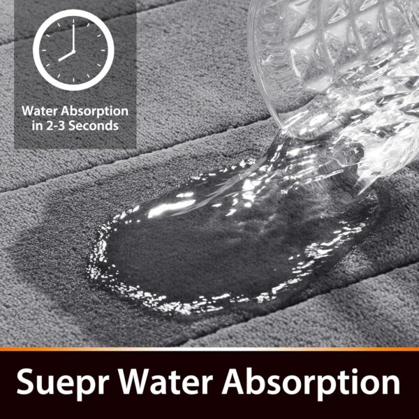 - Super Water Absorption: The soft velvet microfiber layer can absorb as much water as possible from your wet feet. And the water do not stay on the surface on the bath mat