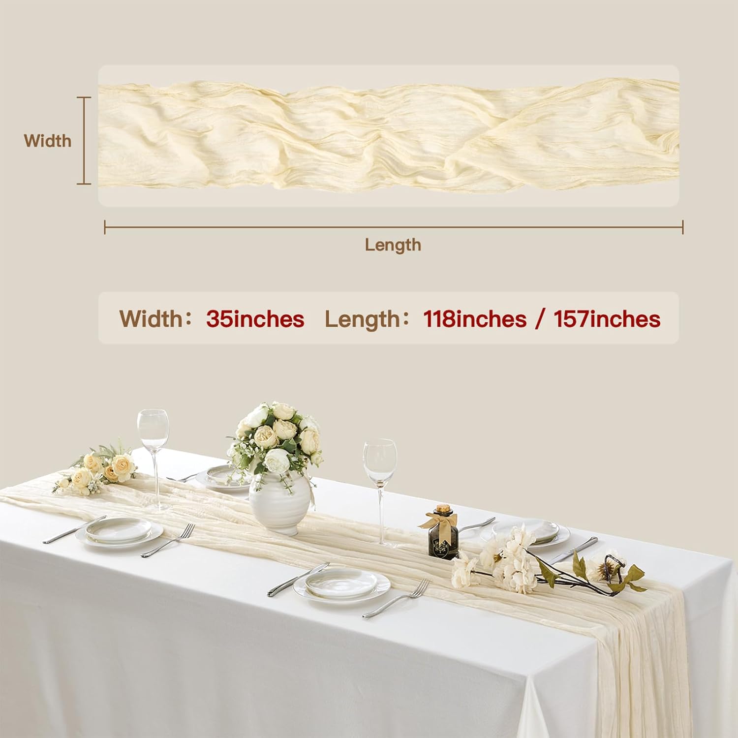 - 【Elegant Material】The cheese gauze table runners are soft, lightweight, and semi-transparent, creating a graceful and romantic appearance. The unique pleating craftsmanship creates a distinctive Bohemian style, marked by rustic simplicity and purity, creating an elegant touch to your event