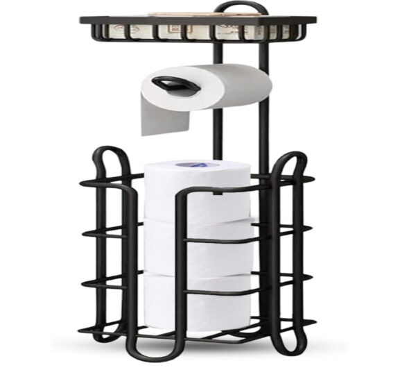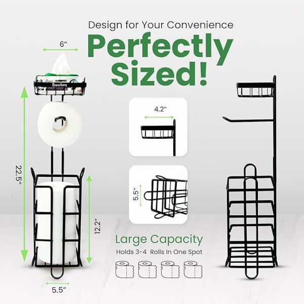 โข ๐๐ฑ๐ญ๐ซ๐ ๐๐ฉ๐๐๐, ๐๐ฑ๐ญ๐ซ๐ ๐๐จ๐ง๐ฏ๐๐ง๐ข๐๐ง๐๐ : Ensure you never run out of toilet paper with this stylish and practical toilet paper holder stand. Designed to dispense 1 roll of toilet paper while securely storing up to 3 additional rolls for storage. Additionally, the top shelf offers extra storage space, ideal for holding items such as your cell phone or baby wipes, enhancing both functionality and convenience in your bathroom.