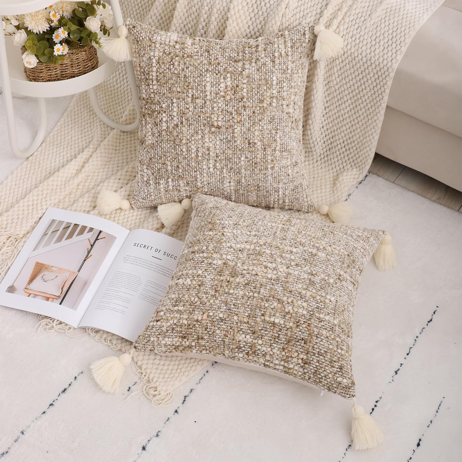 - Tassle Design: Handmade four corner tassels are not easily detached. Cute tassel and unique visual colors constitute the Bohemian style. It also go well with the decoration of farmhouse style, ethnic style, and retro style.