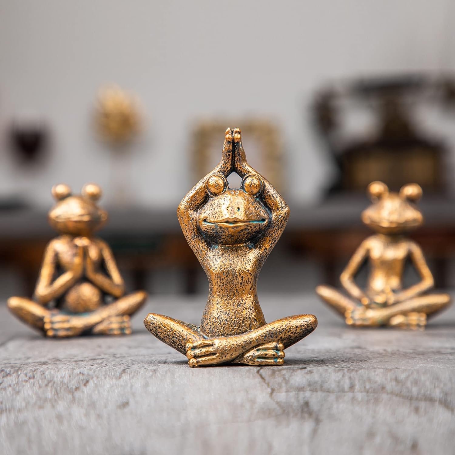 - The frog figurines are sculpture with high quality resin material.The Frogs are sitting with different Yoga pose,they will bring a peaceful and tranquil atmosphere to your place.
