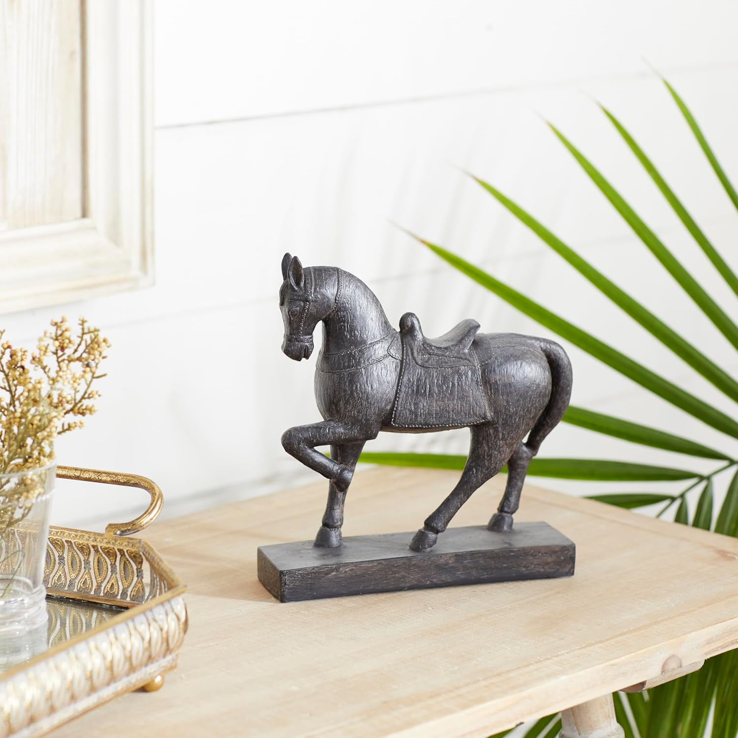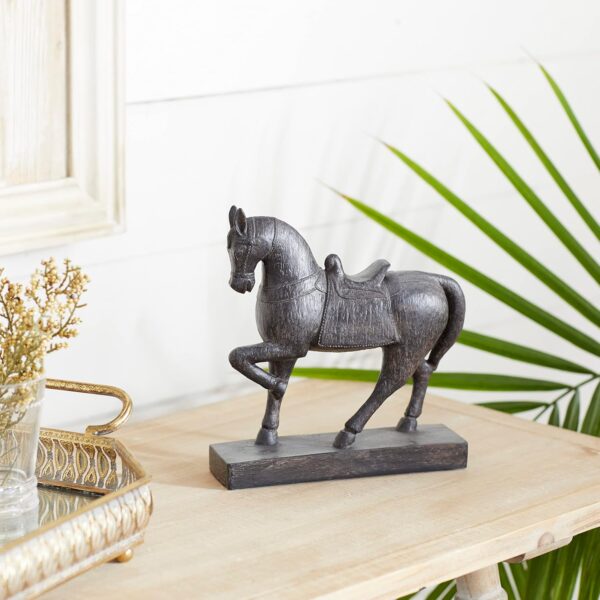 - HORSE ACCENT STATUE: Designed with detailed standing horse with raised leg and saddle detail