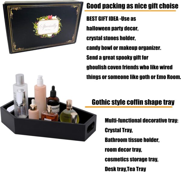 - GOOD IDEA -Use as Halloween party décor, crystal stones holder, candy bowl or makeup organizer. Send a great spooky gift for ghoulish coven friends who like wired things or someone like goth or Emo Room. They will surely get surprised for this unusual coffin furniture! Just to spend a stunning year round gothic themed decoration with this curiosities gift here