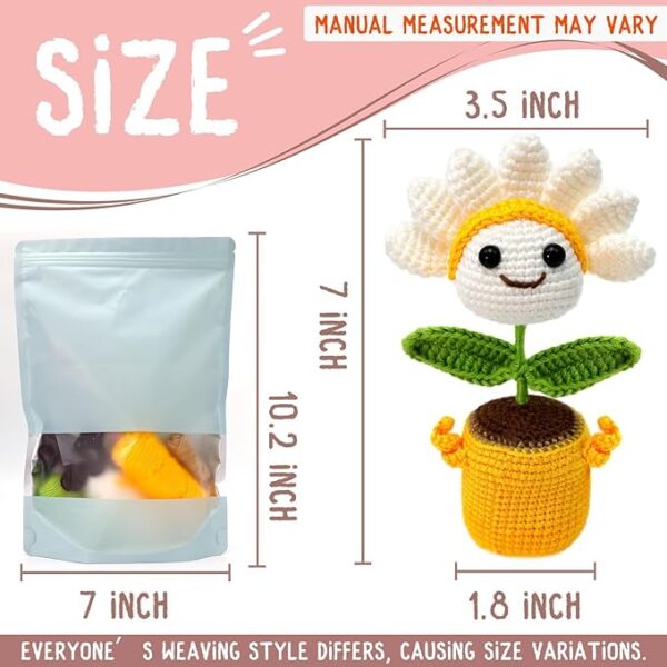 - Perfect Daisy Crochet Kit: This delightful plant knitting kit for beginners is perfect for all ages and an ideal choice for beginners. Create these adorable little flower and share them with family, friends, and loved ones. It makes a wonderful gift for Christmas, Halloween, birthdays, Thanksgiving, New Year, Valentine’s Day, or any other special occasion