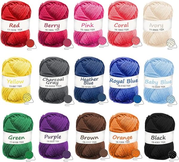 - 15 Colors Crochet Yarn Kit: Our Learn to crochet kits for adults beginner includes a super soft crochet yarn set with 15 rich colors (100 yards per skein.)