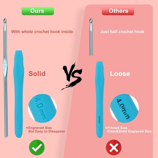 - [Metal Crochet Hooks Set] Crochet hooks are lightweight and durable. The smooth crochet needle glides smoothly on the yarn without snagging or breaking the yarn. The colored rubber handle crochet hooks are ergonomically designed to help for extra grip, very comfortable to use and hold. Even if you crochet for a long time without feeling discomfort. Lace crochet hooks can be used to create a variety of delicate and small lace projects.
