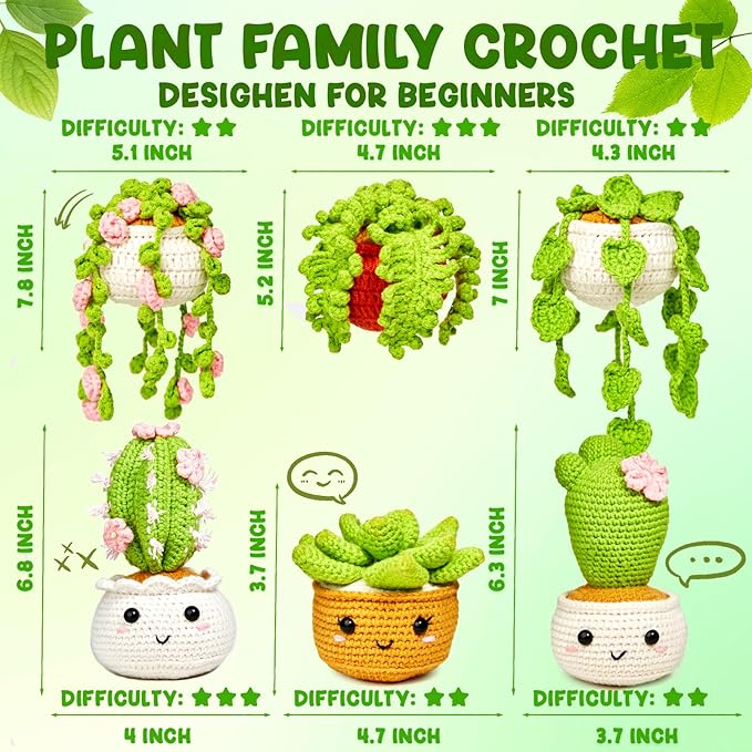 • 🎁Perfect kits: Our plant crochet set suitable for all ages, a great kit for anyone interested in learning crochet. Create these little stuffed cuties and share them with your family, friends, and lovers. It’s great presents for Valentine’s Day, birthdays, Christmas, Halloween, Thanksgiving, New Year or other holiday.