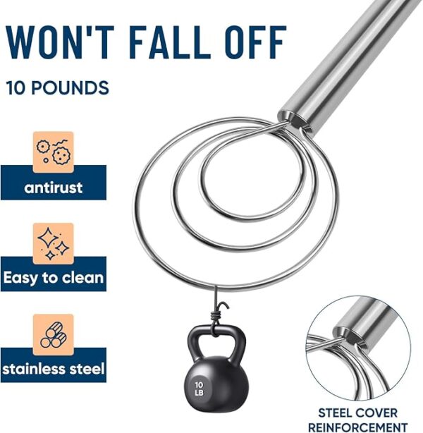 • Easy to Clean: This dough hook is easy to clean, just dip it in water and stir, and use your fingers or a brush to remove any residue from the rings or gaps. In addition, this Dutch whisk is also suitable for mixing other ingredients