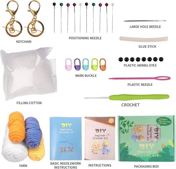 • Complete Kit: Crochet kit with all the accessories you need. Contains yarn, crochet hook,keychain, stuffing, needles, eyes, marker clasps, detailed instructions, and step-by-step video tutorials. Ideal for beginners, whether adult or kid.