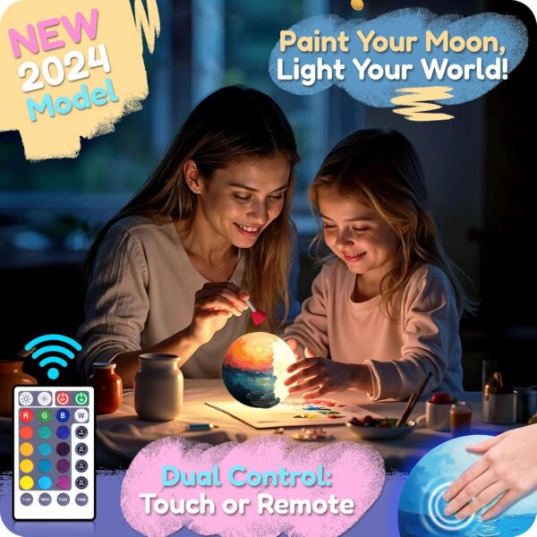 DIY Moon Lamp Kit for Kids – Paintable Night Light with Remote & Stand, Ages 6-12