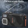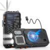 2-in-1 Emergency Radio & Solar Power Bank: Features FM/NOAA weather radio, 22000mAh battery, wireless charging, 20W fast charge, hand crank, SOS flashlight, and Bluetooth functionality