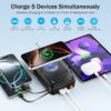 Multi-Device Charging: Equipped with 4 ports (iOS, USB-A, USB-C, wireless) and 3 cables to charge up to 5 devices simultaneously