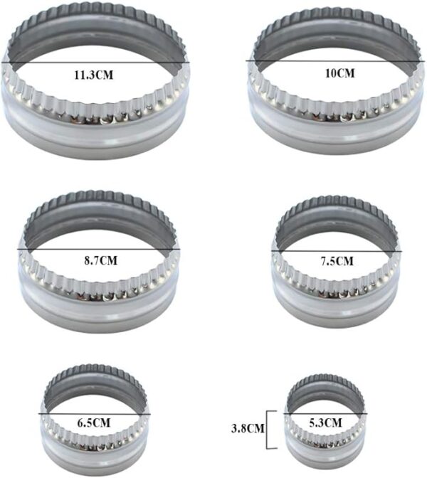 • ✔ The Fluted Cookie Cutter Set including 6-piece double sided round cookie cutters. Each cutter has a fluted side and a plain side.