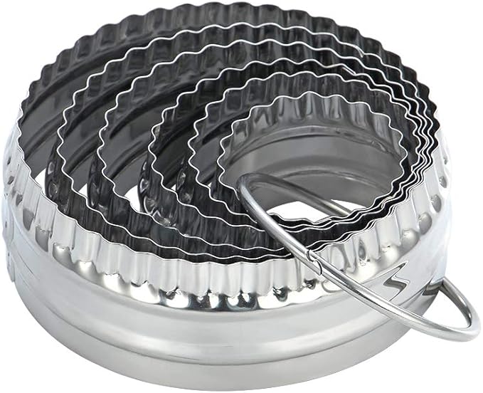 Fluted Cookie Cutters Set – 6-Piece Stainless Steel, Double-Sided Fluted & Plain Edge