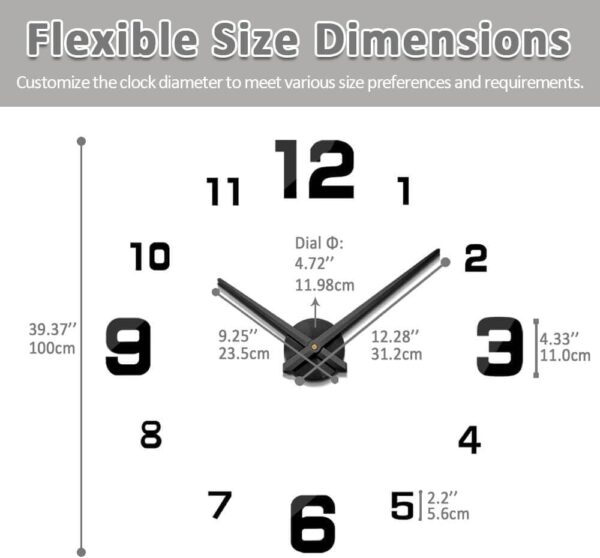 - DIY ASSEMBLY – Design the position and size of the DIY wall clock as you like. Enjoy the happiness with your families or friends to install the clock together, enjoy the fun of DIY.