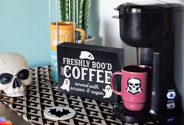 - We offer a variety of styles of coffee bar sign designs so you can find the perfect Coffee Bar Essentials for your home’s interior or Halloween office décor.