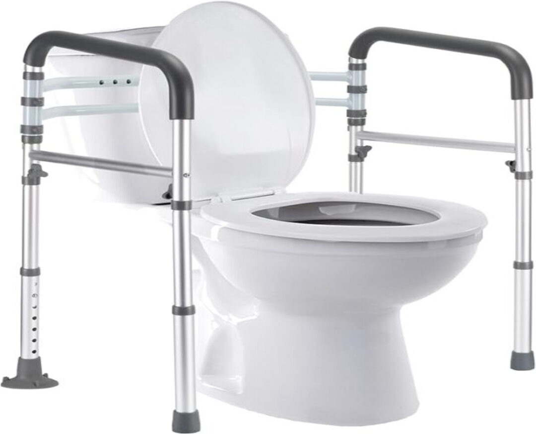 • STURDY DURABILITY YOU CAN TRUST: Made from corrosion-resistant aluminum frames, our toilet safety rails are built to last and can hold up to 300 pounds. The sturdy construction ensures stability and reliability for everyday use. Invest in safety measures that stand the test of time, because your loved one’s safety is priceless.