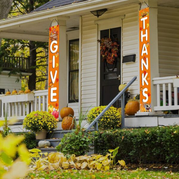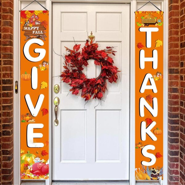 - Application: The GIVE THANKS Banner Porch Sign perfect for the autumn and thanksgiving day and boost atmosphere for your party. you can put them indoor and outdoor, front door, porch, balcony, living room, bedroom and anywhere as you like. very nice enough for your party time! =