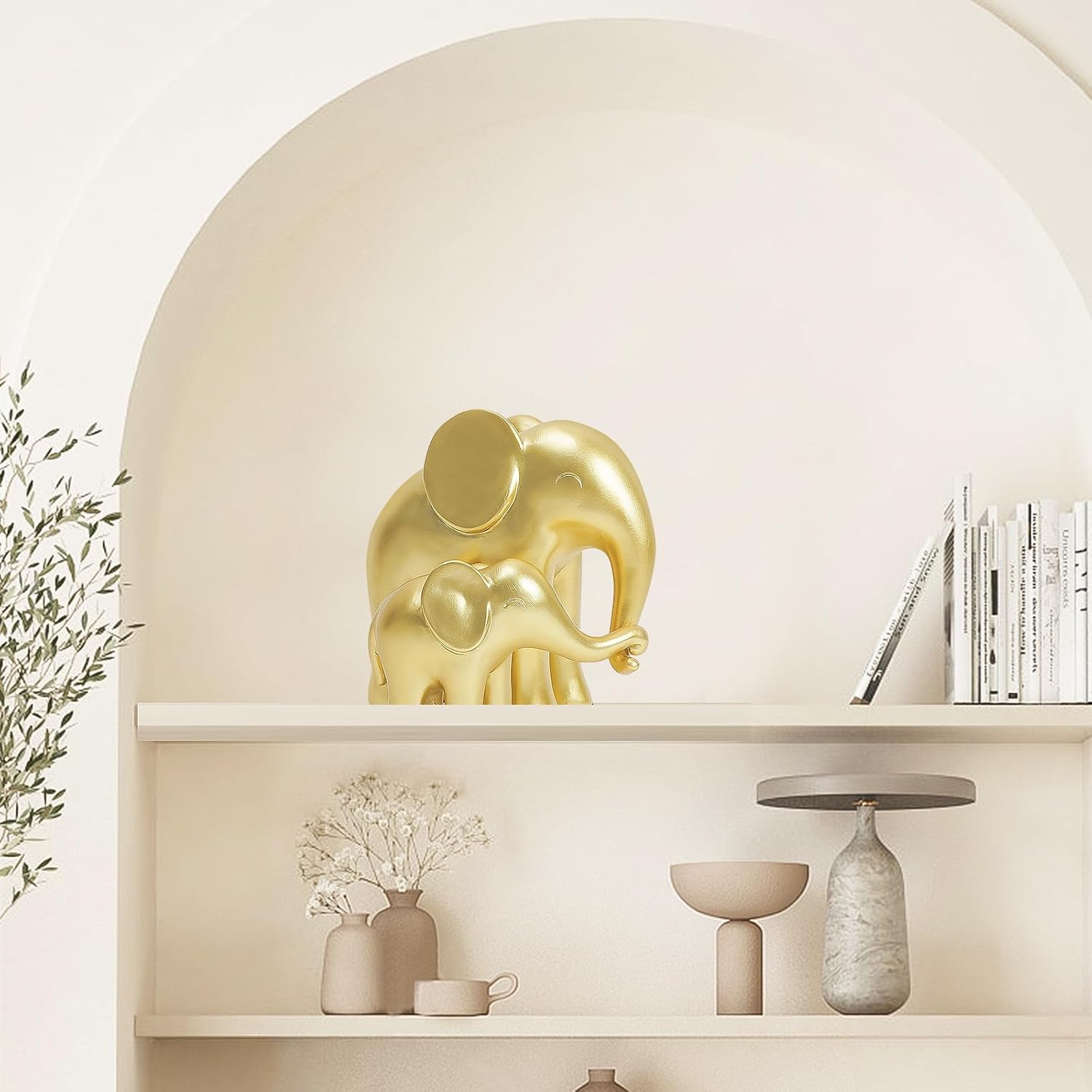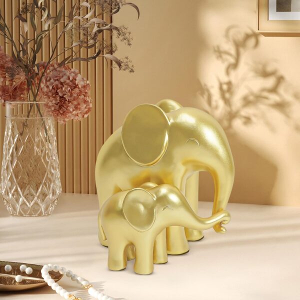 Gold Elephant Statues – Elegant Mother & Baby Figurines for Living Room or Desk Décor