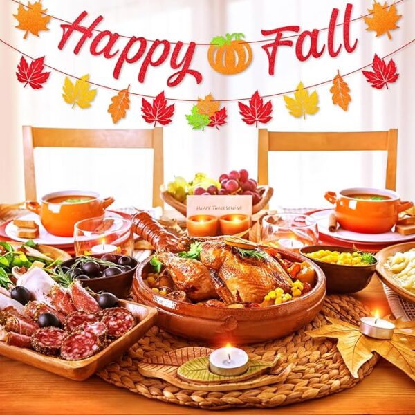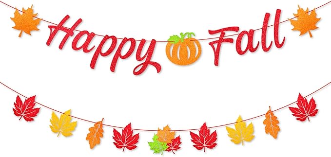 • Eye-Catching Design – The banner features large, bold letters flanked by colorful leaves and a pumpkin image, creating a festive and welcoming effect. The addition of glitter on the letters and leaves enhances its visual appeal, making it perfect for creating a warm and inviting atmosphere.