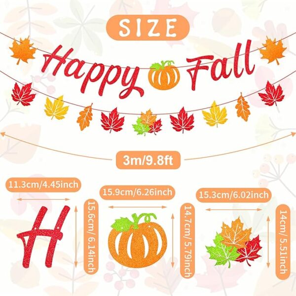 • Premium-Quality Happy Fall Banner – Crafted from sturdy, high-quality cardboard, this “Happy Fall” banner is designed to last through the entire autumn season. The vibrant glitter detailing adds a touch of sparkle, making it a captivating decoration for any setting.
