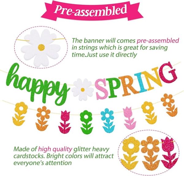 • PERFECT SPRING DECORATIONS:Happy Spring!The happy spring banner will create vibrant atmosphere on your spring or Easter party.This happy spring banner is a good decorations for celebrating your Spring or Easter party.Use them to decorations anywhere you like,This banner will be the perfect addition to spring home photo that you can share with all our family and friends !