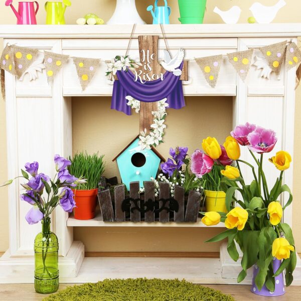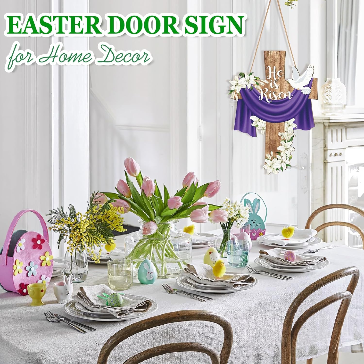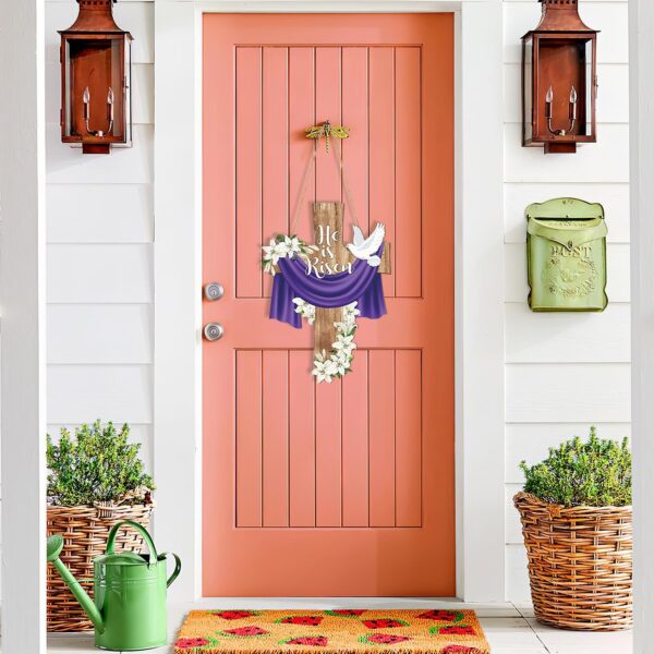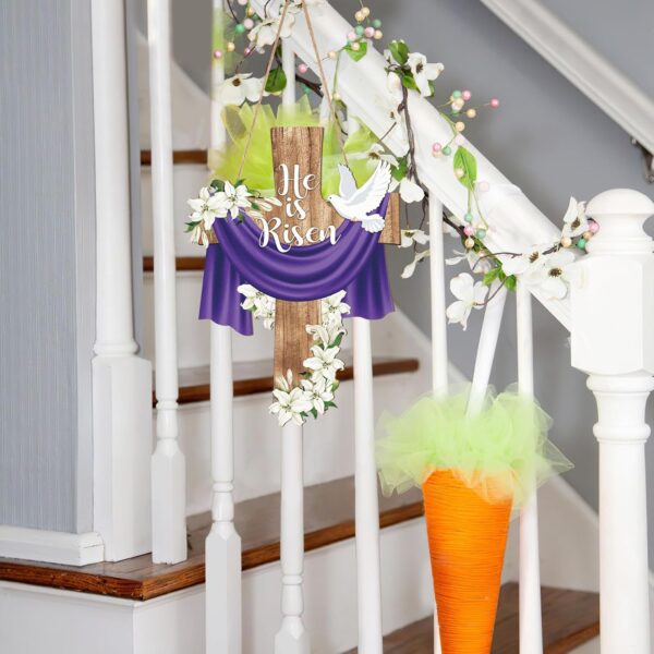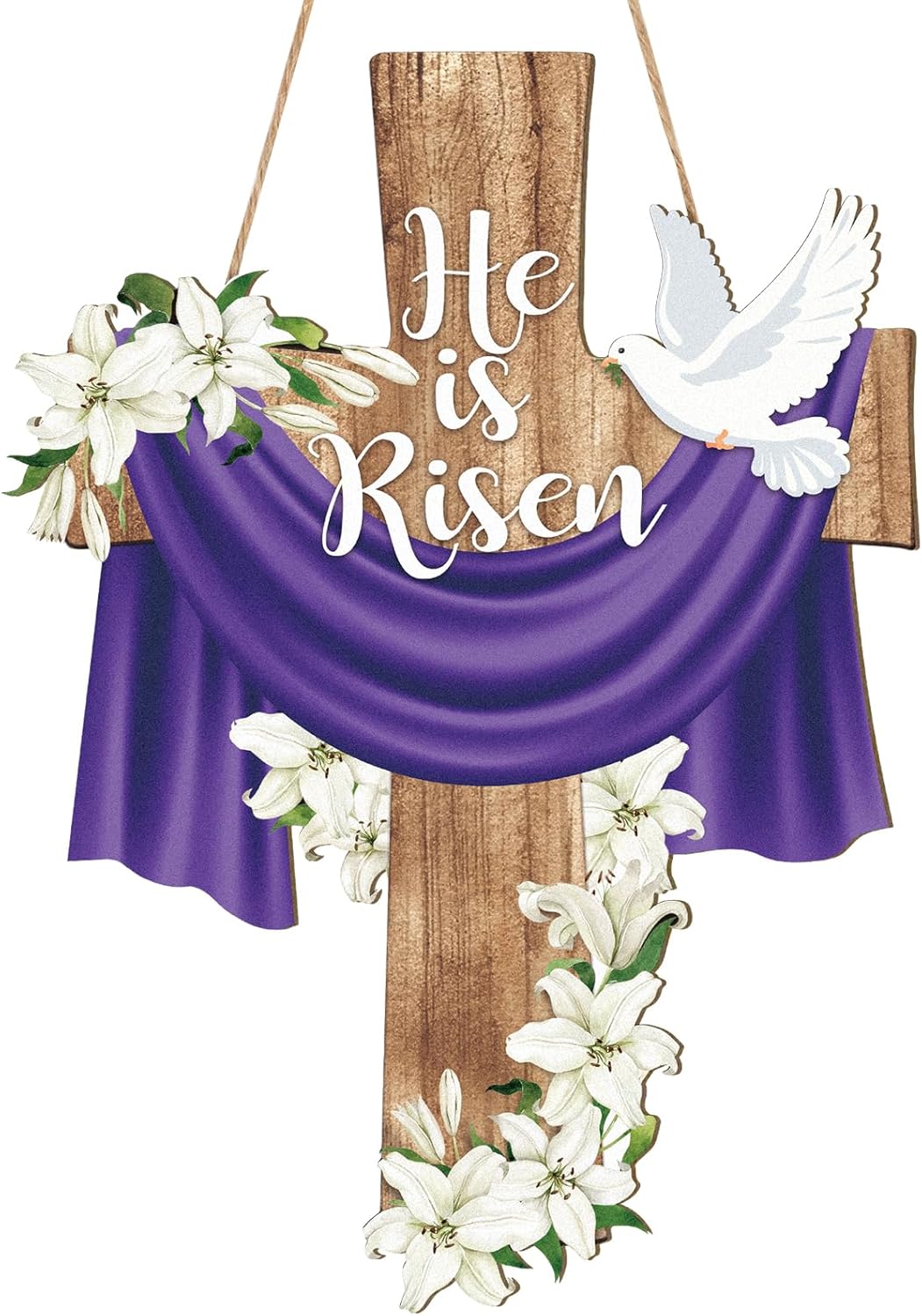 - Unique Design: The Easter sign is a cross with a lily flower design and the text “He is Risen”. It is a classic door decoration to commemorate Jesus.