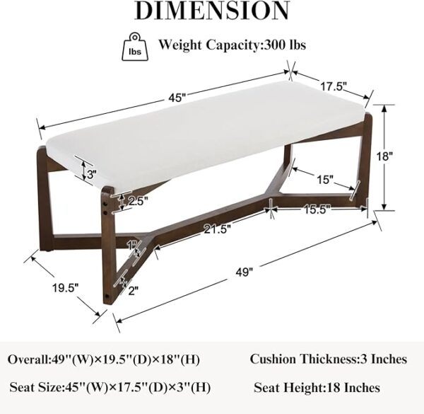 • [Sturdy Wooden Base] The solid wood base of this dining table bench features an X-shaped frame for enhanced stability through its reinforced triangular structure. Adjustable footpads protect your floors from scratches while keeping the bench perfectly balanced