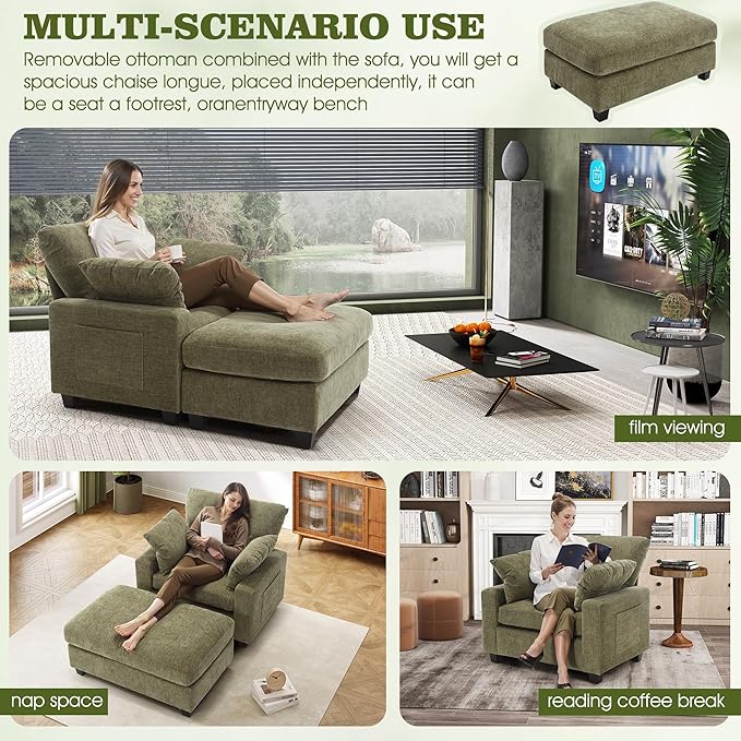 • ADJUSTABLE SEATING DEEPNESS – This toffee chair as a depth of 57.52 inches and can hold up to 350 pounds! The footrests are removable to increase the sitting depth to solve the problem of insufficient seating depth, allowing you to adjust the seating depth at any time.