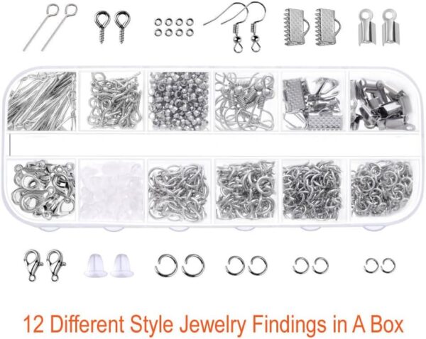 - VARIOUS TYPES OF JEWELRY MAKING ACCESSORIES: Totally 845 pieces different styles of jewelry findings include open jump rings (4 mm, 5 mm, 6 mm, 8 mm), lobster clasps, eye pins, screw eye pins, crimp beads, earring hooks, ribbon ends, cord ends and rubber earring back