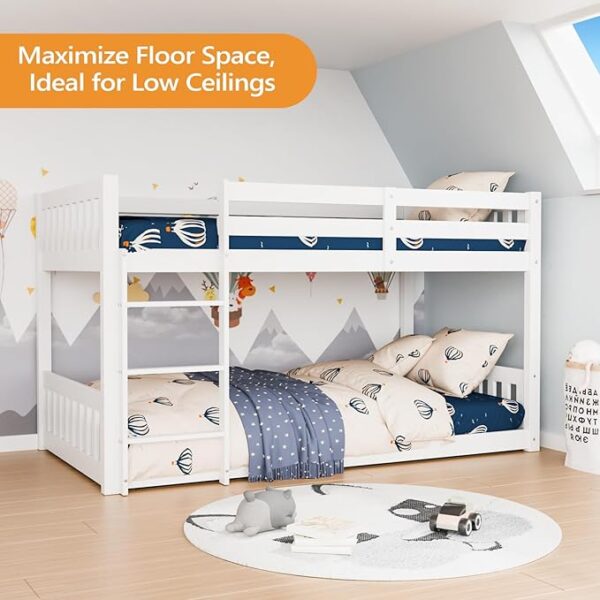 Be the first to review “Solid Wood Low Twin Over Twin Bunk Bed with Guardrails & Ladder, No Box Spring Needed, White”