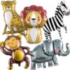 - 🐾 Jungle Safari Animals Balloons: You will get 5 pieces large safari smile animal foil balloons, include lion balloon (50x77cm), leopard balloon (60x76cm), elephant balloon (80x55cm), zebra balloon (84x63cm), monkey balloon (60x76cm), with 1pc balloon ribbon.