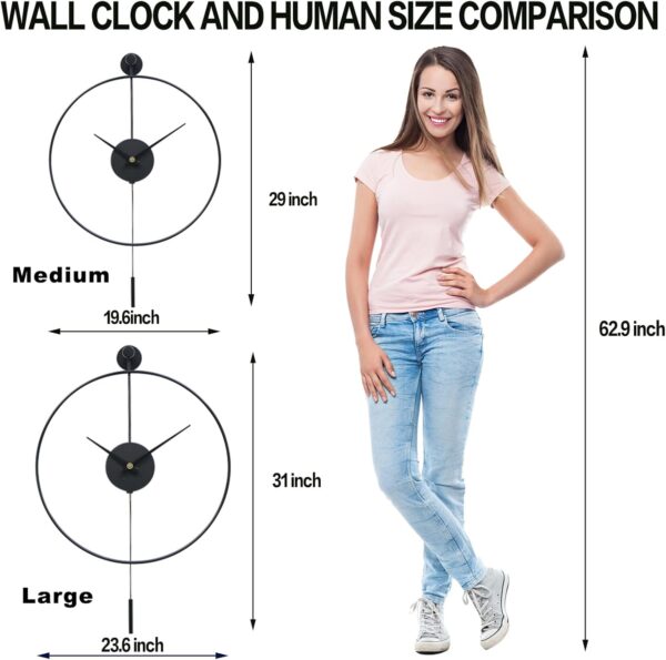 • 【Silent Sweep & Elegant Pendulum Movement】 This modern wall clock features no-tick technology for undisturbed relaxation, paired with a smooth-swinging pendulum that adds vintage charm to contemporary spaces. Available in 20″ (medium) and 23.6″ (large wall clock) sizes, its minimalist design blends perfectly with living room aesthetics while maintaining absolute quietness.