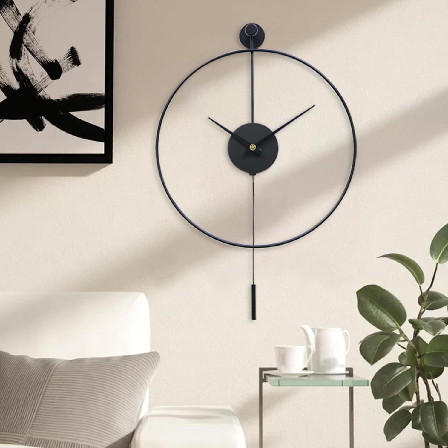 Large Silent Wall Clock with Pendulum – 23.6″, Black, Modern Metal Design